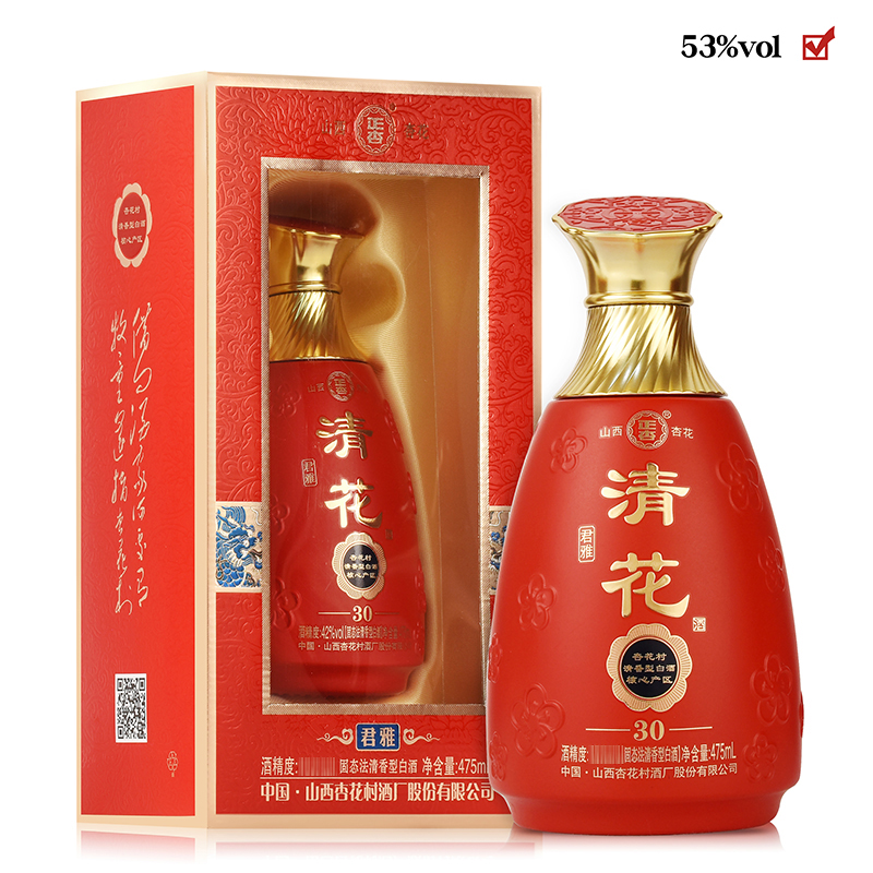 • 商品名称:清花君雅红瓶 53度